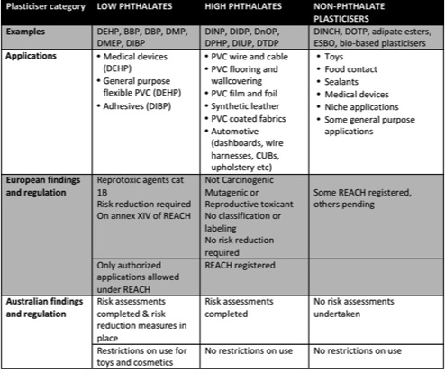 Information sources for table above: NICNAS and European Council for Plasticisers and Intermediates (ECPI)
